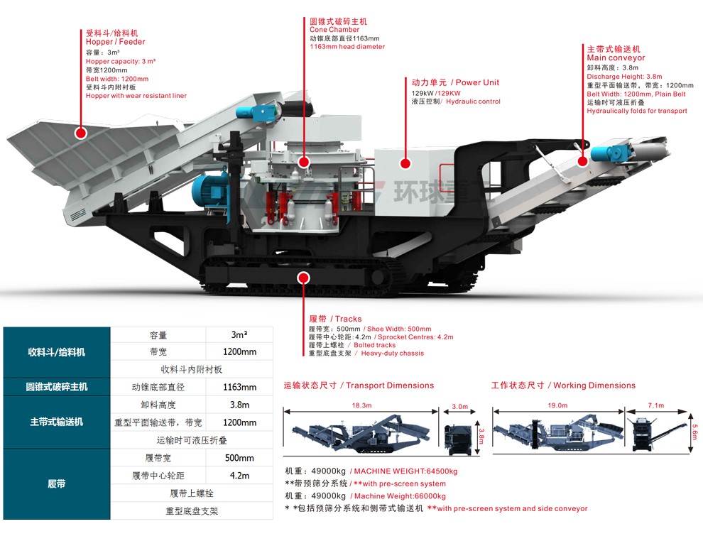 HC配置有HC300圓錐破碎主機(jī),靜液壓直接驅(qū)動通過液壓調(diào)節(jié)排料口大小,受料斗/給料機(jī)帶有全白動,破金屬探測系統(tǒng)和卸料系統(tǒng),起到保護(hù)破碎主機(jī)的作用,并且減少了因通過卸料槽人工清除金屬物而造成的停機(jī)時間。此外該設(shè)備還具有安裝迅速,檢修簡易碎比高,產(chǎn)能產(chǎn)出高和電控系統(tǒng)先進(jìn)等特點。
