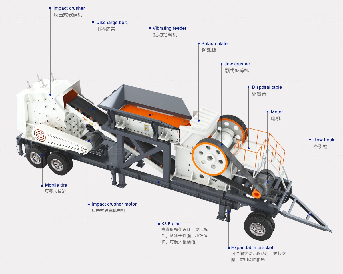 三組合移動破碎站單臺機器就是一條生產(chǎn)線,方便生產(chǎn),移動也很靈活。